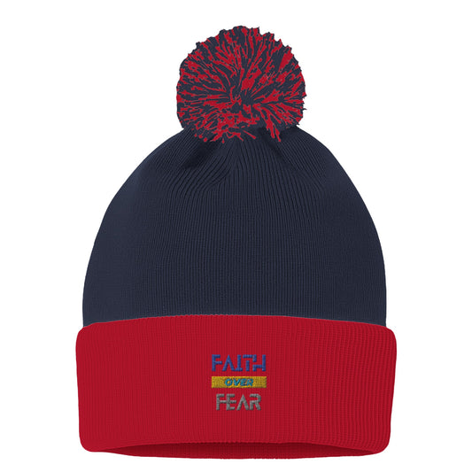 Godly Mind Pom-Pom Cuffed Beanie Faith Over Fear